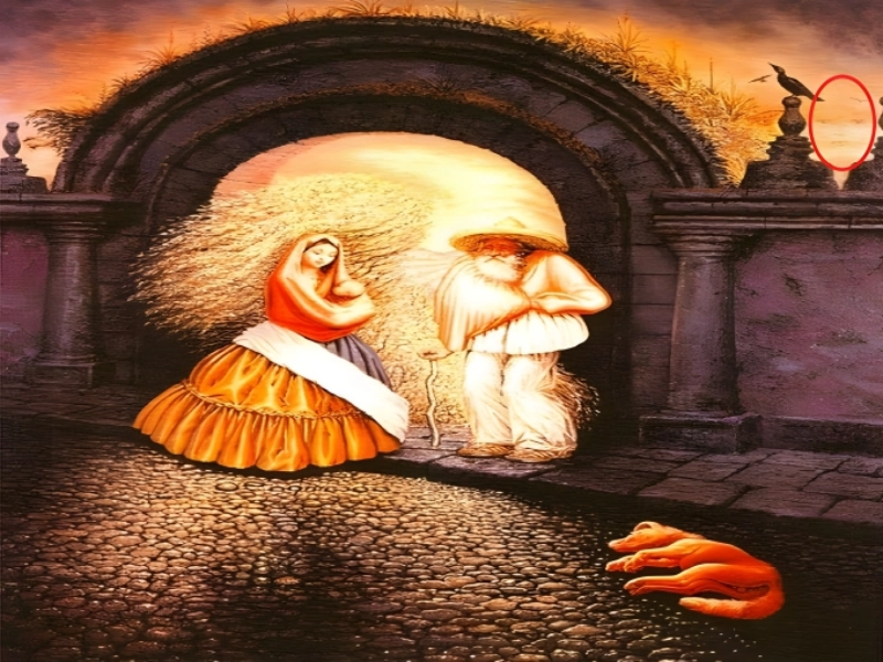 この顔は最も気づくのが難しいものです。鳥たちが鼻と目を形成し、顔の錯覚を作り出しており、他の2つの顔の間に隠されています。