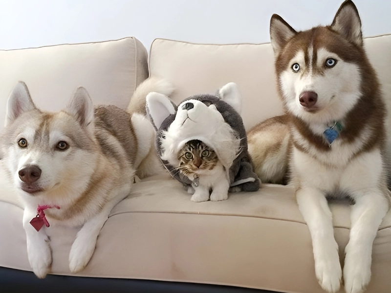 犬たちはもうスパイを見つけたでしょうか?光景は遊び心のあるかくれんぼのゲームの設定で、一人の人物が専門的に環境に溶け込みながら、好奇心旺盛な犬が手がかりを探しています。この写真は狩りの緊張と興奮を捉え、カモフラージュと発見の両方の時代を超えた魅力を思い出させます。