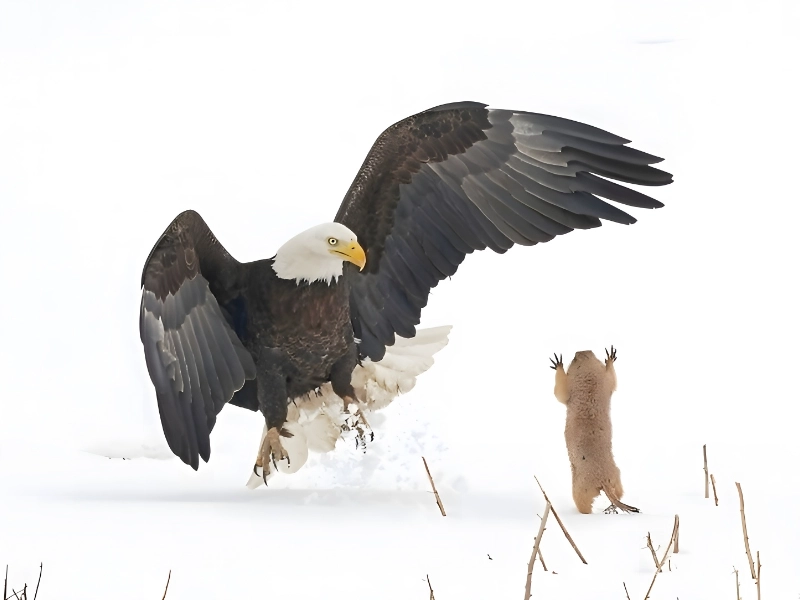 「降参です!」このユーモラスな画像は、動物界における明らかな敗北の瞬間を捉え、面白く愛らしい光景を作り出しています。被写体はおそらく毛皮または羽の生えた生き物で、人が諦めるのによく似たポーズで捕らえられています。おそらくそれは前足を上げたアライグマ、後ろ足で立ち前足を上げたプレーリードッグ、あるいは広く広げた翼を持つ鳥でさえあるでしょう。動物は目に見えない闘争においてタオルを投げ入れているように見え、その姿勢と態度が結合して人間のボディランゲージのほとんど完璧な模倣を作り出します。この擬人的性質が画像を非常に印象的で面白くしているものです。写真家の申し分のないタイミングはこの一瞬のポーズを凍結させ、視聴者が人間の感情と意図を動物に投影することを可能にしています。生き物は実際には降参していませんが、人間の行動への類似は疑いの余地がなく楽しませます。この画像は楽しませるだけでなく、動物界への私たちのつながりを思い出させ、種を超えたボディランゲージの驚くべき類似性を強調します。それは自然におけるこのように正確に時間を計られ表現力豊かな瞬間を捉える写真家の技術の証です。