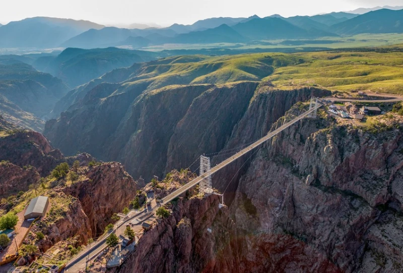 アーカンザス川から1,000フィート(約305メートル)の高さに位置するロイヤルゴージ橋は、アメリカ合衆国で最も高い吊り橋であり、コロラド州の最も象徴的なランドマークの一つです。この橋を渡ることは空中を歩くようなもので、深い峡谷が足元に広がり、パノラマビューが四方に広がります。この橋は長らくスリルを求める人々や写真家の磁石となっており、美しくも威圧的な息を呑むような眺望を提供します。