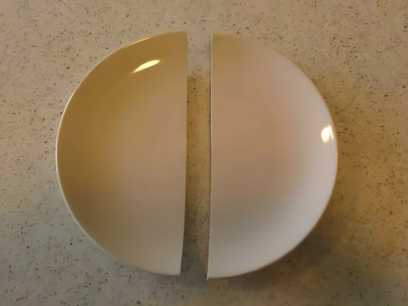 出来事: お皿が完璧に真っ二つに割れた 場所: 不明 お皿を落としてそれが正確に真っ二つに割れる確率はどれくらいでしょうか?ソーシャルメディアのユーザーは、これが本物か仕組まれたものか議論しました。