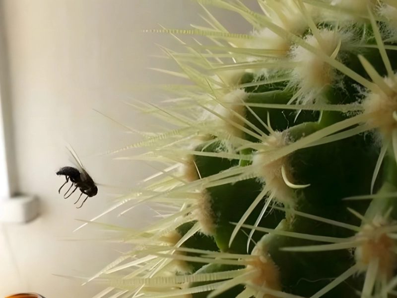 出来事: ハエが自ら刺さった 場所: 不明 原因は不明ですが、このハエはどういうわけかトゲのある植物に自ら串刺しになってしまいました。家主にとって幸いなことに、この植物は食虫植物ではありません。