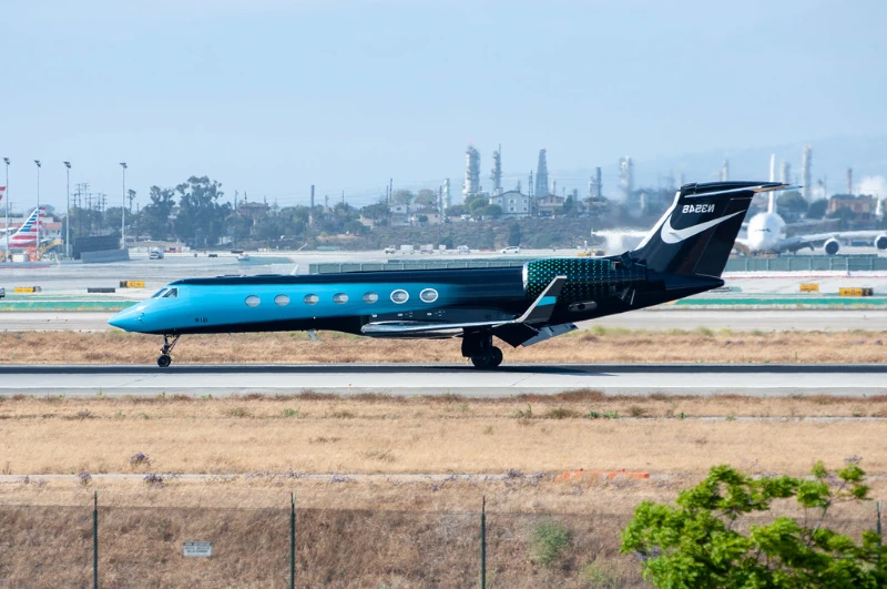 ナイキのカスタム塗装されたガルフストリーム G550は、ブランドアイデンティティと創造性の空飛ぶショーケースです。ダークブルーからライトへの動的なグラデーションは、象徴的なスウッシュと「Just Do It」のスローガンとともに、このジェット機を強力なブランディングツールにしています。このデザインは卓越性と革新へのナイキの取り組みを反映し、航空機を世界的存在と願望の象徴へと変えます。このジェット機は単なる旅行手段ではなく、スタイルと野心の声明です。