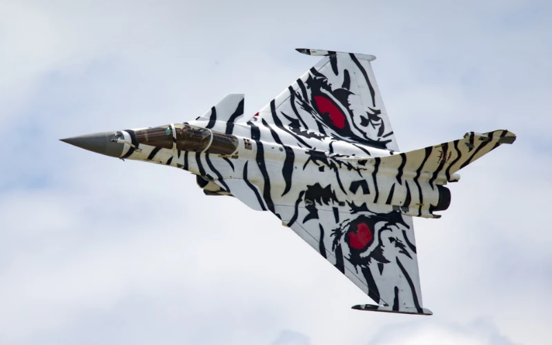 NATOタイガーミートでの創造的な塗装の伝統を引き継ぎ、フランスのダッソー ラファールMは北極虎のモチーフを特徴としています。その猫科の前任者とは異なり、このジェット機の洗練されたデザインは印象的なカラーパレットによって強化されています。北極虎のテーマはジェット機の白と黒のベースに完璧に合っていますが、それを真に定義づけているのは鮮やかな赤い目です。NATOタイガーミートのために塗装されたこのラファールMは、軍事的力と芸術的想像力がどのように共存できるかを示し、空に大胆な声明を放っています。