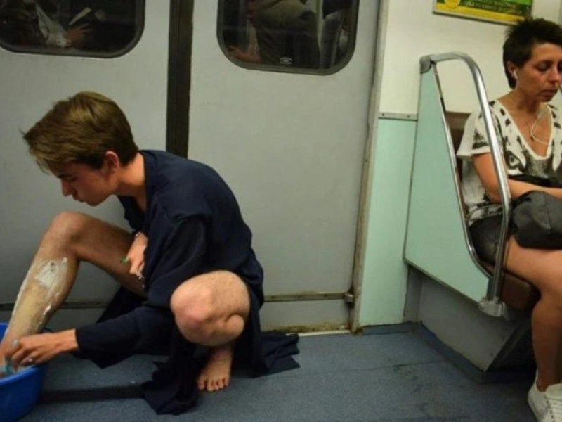 セルフケアは家で待つ必要はありません。この旅行者は通勤を美容セッションに変え、電車内でフェイスマスクを適用したりメイクを直したりしました。