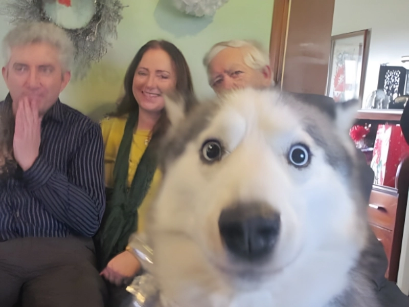 この犬は好奇心旺盛に見え、家族写真のために最高の笑顔を見せています。もしかしたらただ楽しみに加わりたいだけなのかもしれません。彼の登場で写真はさらに良くなりました。あの愛らしい顔に誰も怒ることはできません。犬の表情は本当にコミカルです。彼はいい子だと言ってあげれば、次回はもっと明るく笑うでしょう。家族の写真に犬を含めることは、常に特別な魅力を加えます。