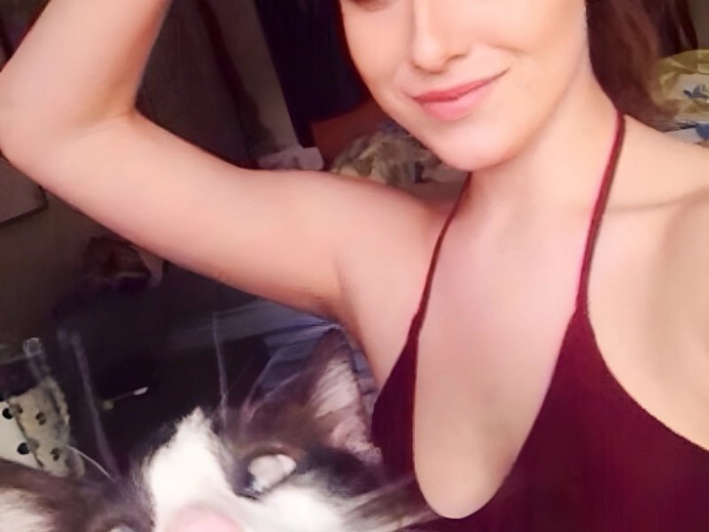 自撮り妨害は現実に起こります。一人の女性がポーズをとると、彼女の猫が寄り目でシーンを盗みます。猫は自撮りに参加するのが大好きです。もしかした子猫は強い臭いに圧倒されたか、飼い主の脇が近すぎるのに耐えられなかったのかもしれません。次回は、少しのデオドラントが役立つでしょう。
