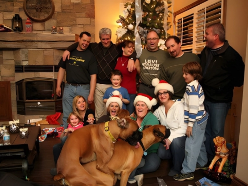 この気まずい家族の休日の写真には、クリスマス精神を少しやりすぎた2匹の犬が写っています。もしかしたら早めにプレゼントをもらったのかも!誰も彼らを止めませんでした——ただパーティーを続けたかっただけなのです。少なくとも彼らのおふざけは飼い主たちの本物の笑顔を引き出しました。時にはムードに流されて、ただそれに身を任せるしかないこともあります。