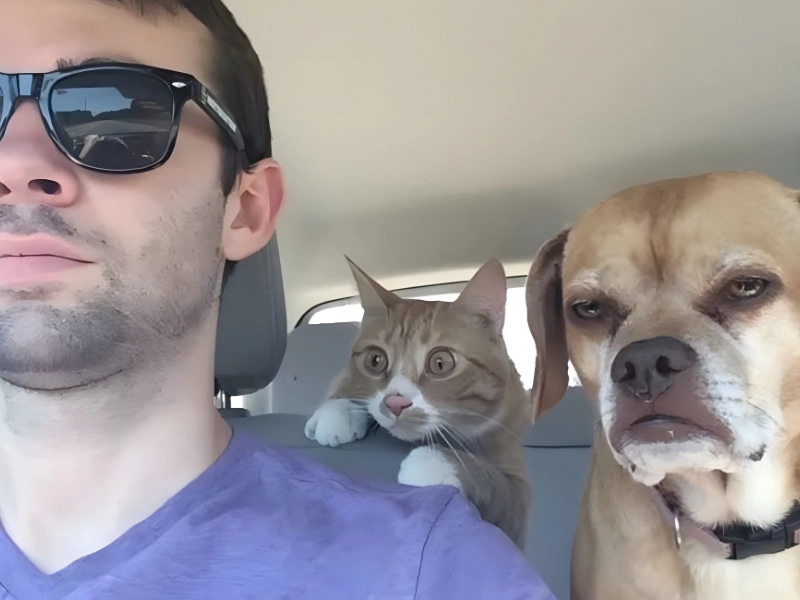 可能性のあるカメラ: Google Pixel 購入場所: Best BuyおよびGoogleストア平均価格:400〜1,200ドル* キャプションは「乗ろう」と言っており、アクション映画の一場面のように見えます。犬は集中している間、猫は緊張しているように見えます。車の乗り心地はこの小さな家族にとって真剣な問題のようです。