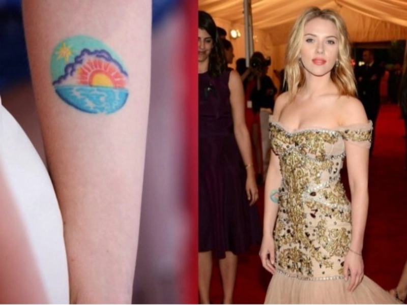 スカーレット・ジョハンソン:芸術的なボディアート スカーレット・ジョハンソンは、手首、足首、肋骨、前腕のタトゥーで知られています。目立つのは左手のカラフルな夜明けのタトゥーで、希望と新しい始まりを象徴しています。このデザインはコレクションにエネルギーを加え、彼女の創造的な精神を反映しています。
