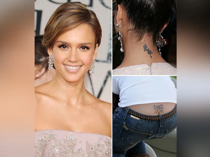 ジェシカ・アルバ:個人的な意義を持つ芸術 ジェシカ・アルバは、それぞれ独自の物語を持つタトゥーで認識されています。彼女は腰の下部にリボンのタトゥーを持ち、外見に優雅さを加えています。また、手首と首にも特別な意味を持つタトゥーを持っています。