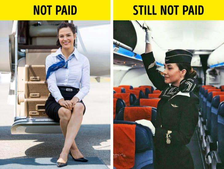 多くの航空会社はフライトアテンダントに時間給を支払いますが、それは機内ドアが閉まってからだけです。つまり、フライト前の準備や着陸後に費やした時間に対しては賃金が支払われません。その結果、離陸前の遅延は特に苛立たしいものになります。なぜなら、乗務員はこの時間帯に賃金を稼いでいないからです。