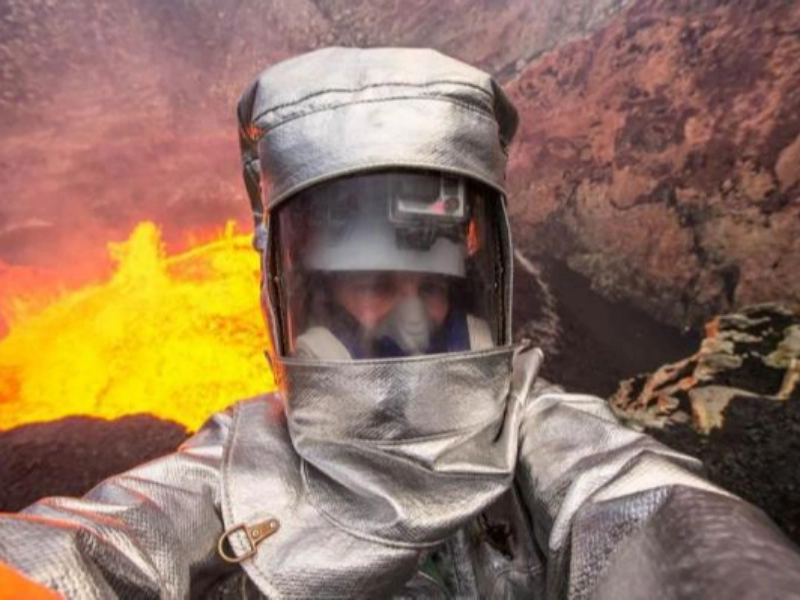 Der Reisende George Kouronis erkundet den Krater des Vulkans Ambrym auf der im Pazifik gelegenen Insel Vanuatu.