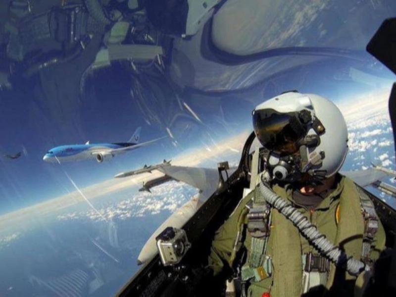 Der Pilot einer F-16 entschied sich, mit einer GoPro-Kamera ein Selfie neben einem Passagierflugzeug aufzunehmen.