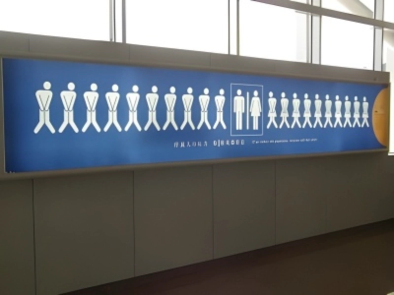 Wenn man auf einem Flughafen dringend zur Toilette muss, können die Wartezeiten gefühlt ewig und extrem nervenaufreibend sein. Diese Beschilderung auf einem chinesischen Flughafen konnte bei der Wegbeschreibung zu den Toilettenräumen nicht deutlicher sein. Es wirkt, als wolle man die Leute darauf vorbereiten, dass sie die Beine überkreuzen und sich in sehr lange Schlangen einreihen müssen. Vielleicht sollte man lieber mehr Geld in zusätzliche Toiletten investieren, anstatt solch riesige Schilder aufzustellen?