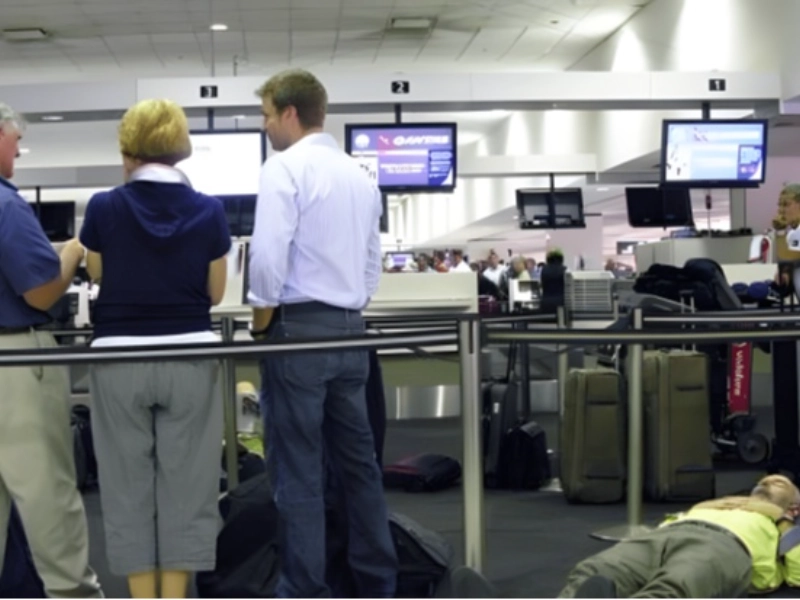 Es mag seltsam aussehen, aber es ist durchaus üblich, Menschen zu sehen, die sich auf dem Flughafenboden ausstrecken. Bei Flugausfällen und Verspätungen sind Sitzplätze oft Mangelware, sodass Improvisation gefragt ist. Dieser Fall wirkt besonders kurios, weil der schläfrige Mann mitten im Check-in-Bereich ruht, während andere normal um ihn herumstehen. Vielleicht sollte man beim nächsten Mal nach einem ruhigeren Eckchen Ausschau halten?
