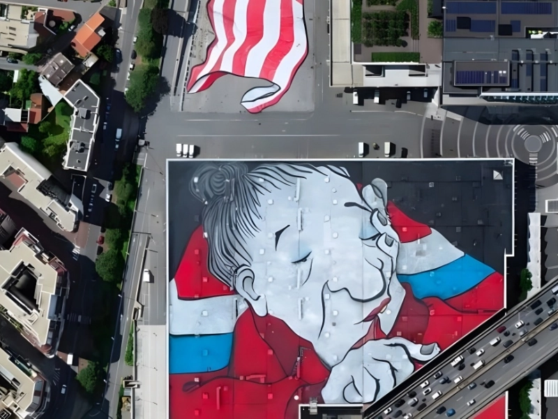 Es wurde 2019 auf dem Dach des Ausstellungszentrums Le Parc des Exhibitions gemalt. Das Duo benötigte acht Tage und hunderte Liter Farbe, um dieses beeindruckende Kunstwerk fertigzustellen. Es ist von den Dächern umliegender Hochhäuser, aus einem Flugzeug oder mit einer Drohnenkamera zu sehen.