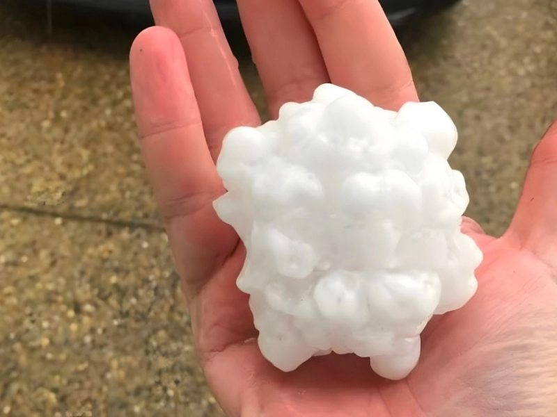 Hagelkörner können sehr gefährlich sein, besonders wenn sie einen in einem ungünstigen Winkel treffen, selbst bei dieser vergleichsweise kleinen Größe. Es ist auch bekannt, dass sie Sachschäden verursachen können. Normalerweise sind sie viel kleiner, aber hin und wieder beschert uns die Natur ein solches außergewöhnliches Phänomen.