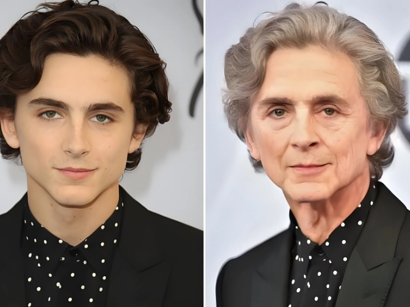 Obwohl er Mitte zwanzig ist, sieht Chalamet auf diesem FaceApp-Bild Jahrzehnte älter aus. Er ähnelt ein wenig Paul McCartney, wie auch einige andere Prominente auf dieser Liste. Trotz der grauen Schläfen wirken sein schwarzer Anzug und seine gepunktete Krawatte sehr stilvoll.