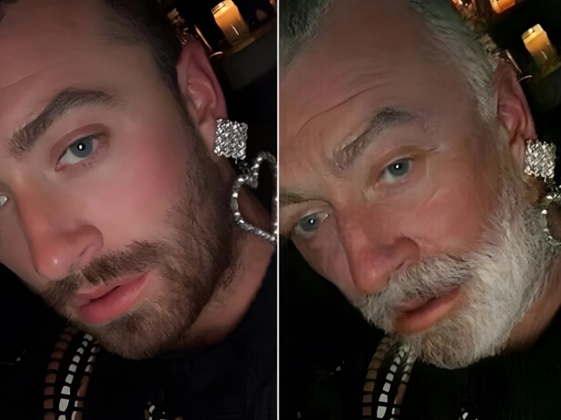 Vor einigen Jahren nahm Sam Smith die FaceApp-Herausforderung an und teilte dieses Bild von sich mit weißem Bart, Diamant-Ohrring und modelhafter Pose. Der englische Singer-Songwriter wurde 2012 bekannt, als er auf Disclosures Song „Latch“ zu hören war. Dieser Track lenkte die Aufmerksamkeit auf Smiths Karriere.